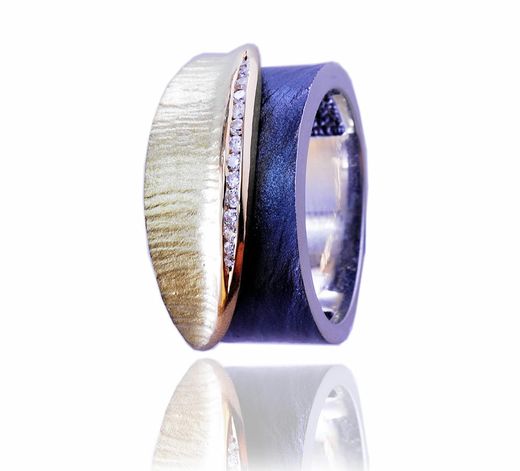 Anillo Oro 18kts Arior Doble Fulla Violeta Con Diamantes 3680750XPU