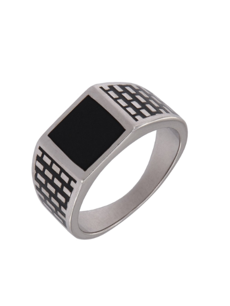 Anillo Plata Hombre PSCE8/14 Sello Cuadrado Chapado Negro