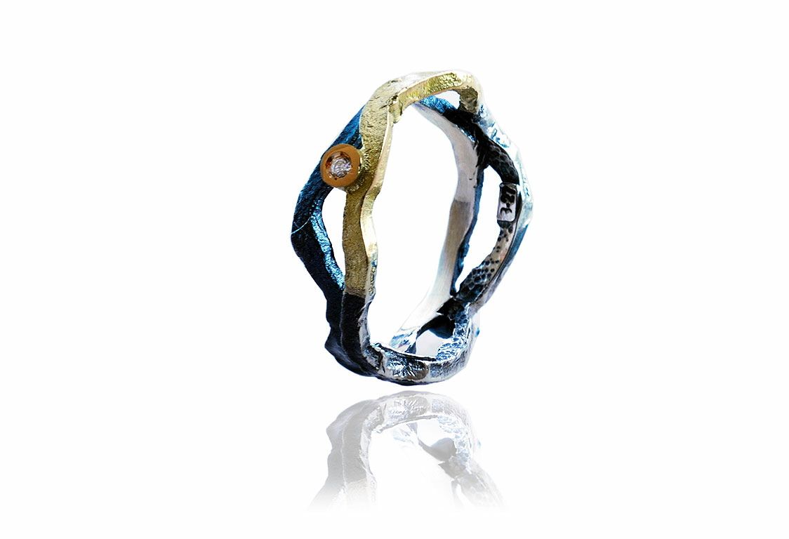 Anillo Plata Y Oro Arior Forza Pequeńo Con Diamante 3680771XU