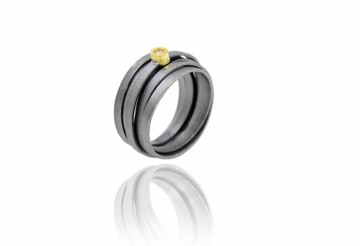 Anillo Plata Y Oro Arior Lux Negro Con Diamante 3680840XU