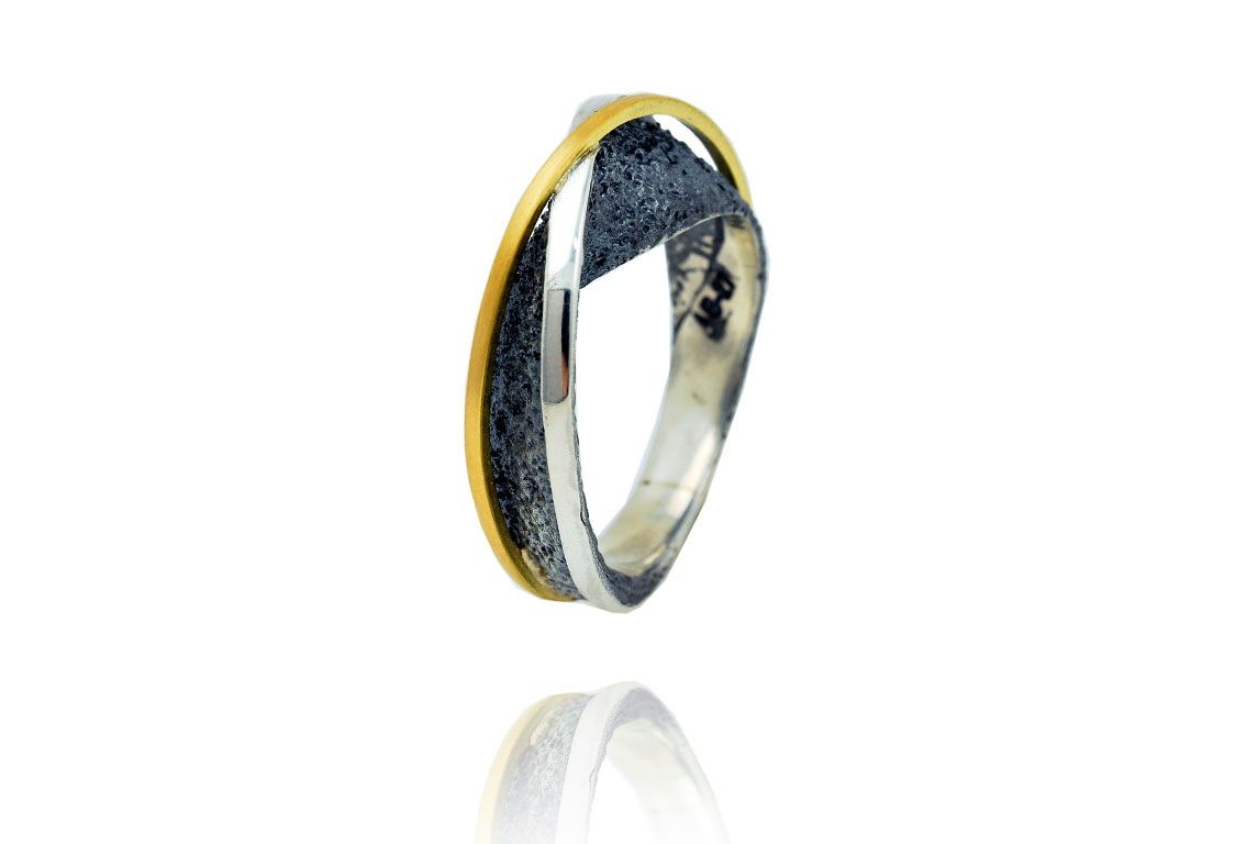 Anillo Plata Y Oro Arior Moebius Texturizado Estrecho 3680911XSU