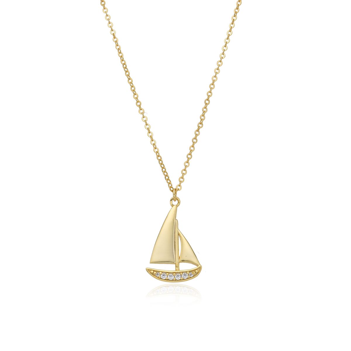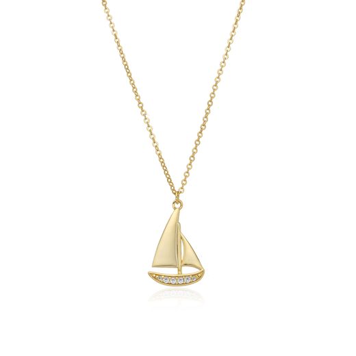 Colgante Plata Dorada 20mm COZ0393DO Velero Circonitas. Colgante fabricado en plata de ley 925 con baño de oro de 18kts. Diseño de velero con circonitas. Medida 20mm. Incluye cadena de 40+5cm, cierre mosquetón. Peso 1,90g. Certificado de autenticidad y garantía de calidad en los materiales de fabricación. Ref COZ0393DO