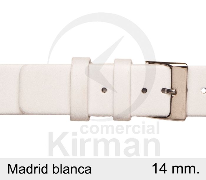 Correa Reloj Piel 14x75/115mm 131122B Madrid Blanca Cierre Hebilla Acero