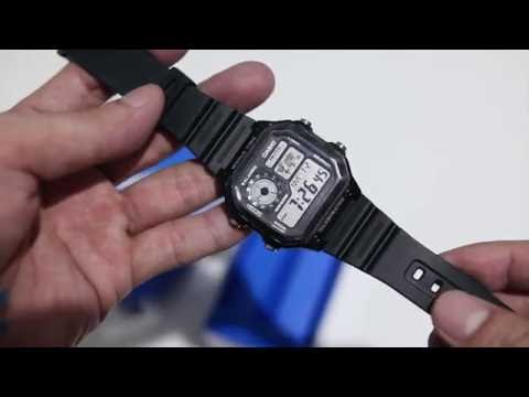 Orologio digitale Casio AE-1200WH-1AVEF World Time Square. Cassa quadrata e cinturino in resina nera. Funzioni di cronometro, sveglia, calendario, luce e ora mondiale. Sommergibile 100 metri. 2 anni di garanzia. Rif. AE-1200WH-1AVEF