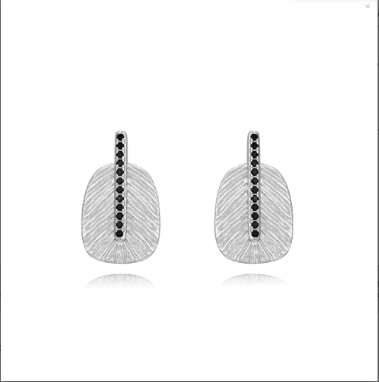 Pendientes Plata 18x11mm PEZ1465RHBK Pluma Circonitas Negras
