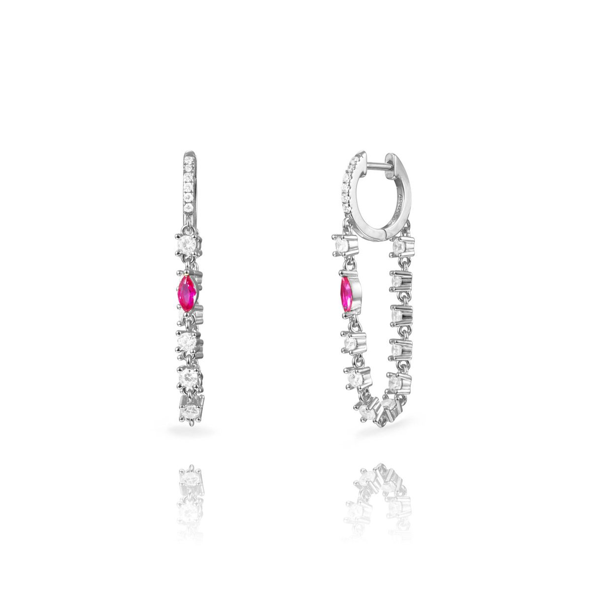 Pendientes Plata 35mm PEZ1655RH Aro Colgante Cadena Circonitas