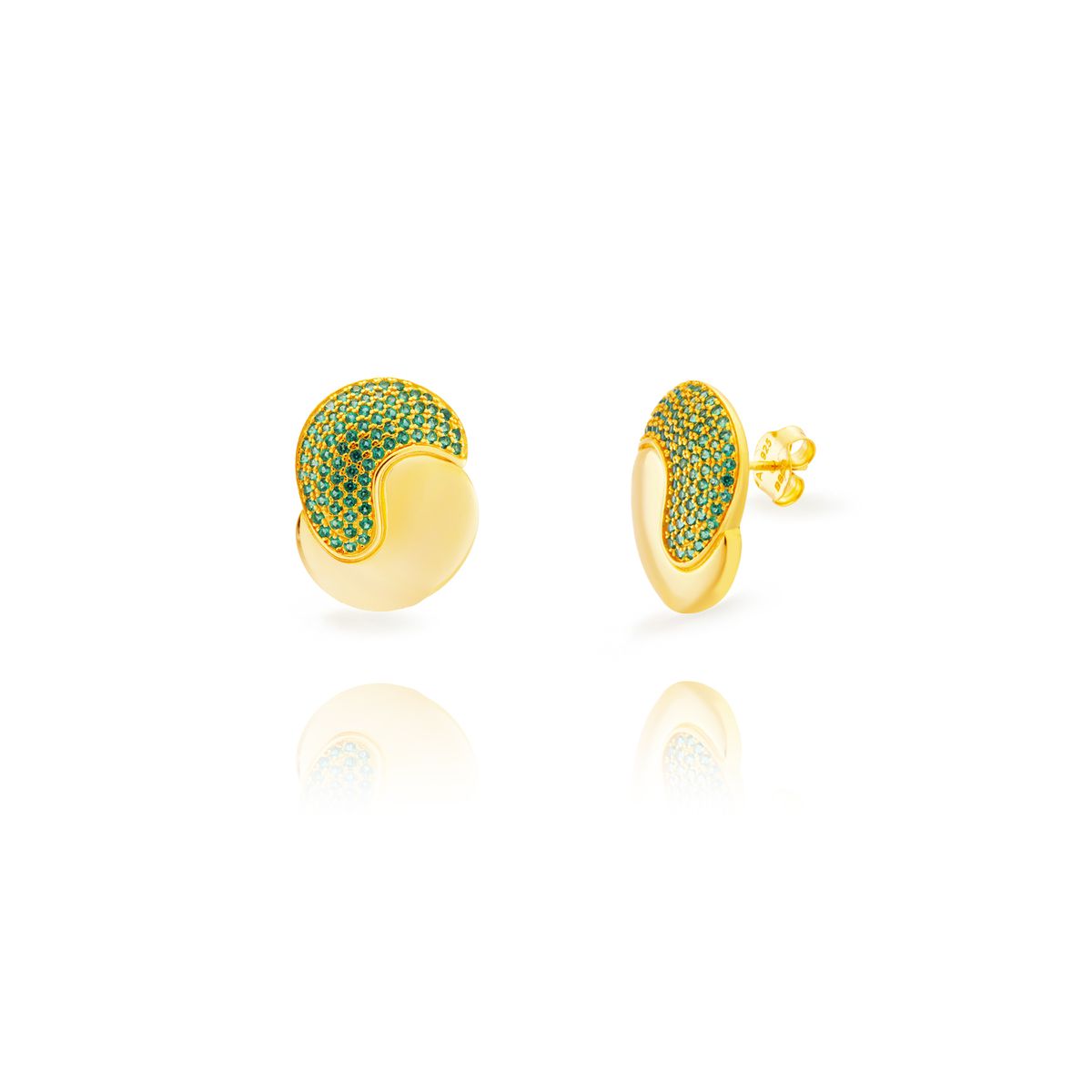 Pendientes Plata Dorada 15mm PEZ1660DOZV Circonitas Verdes