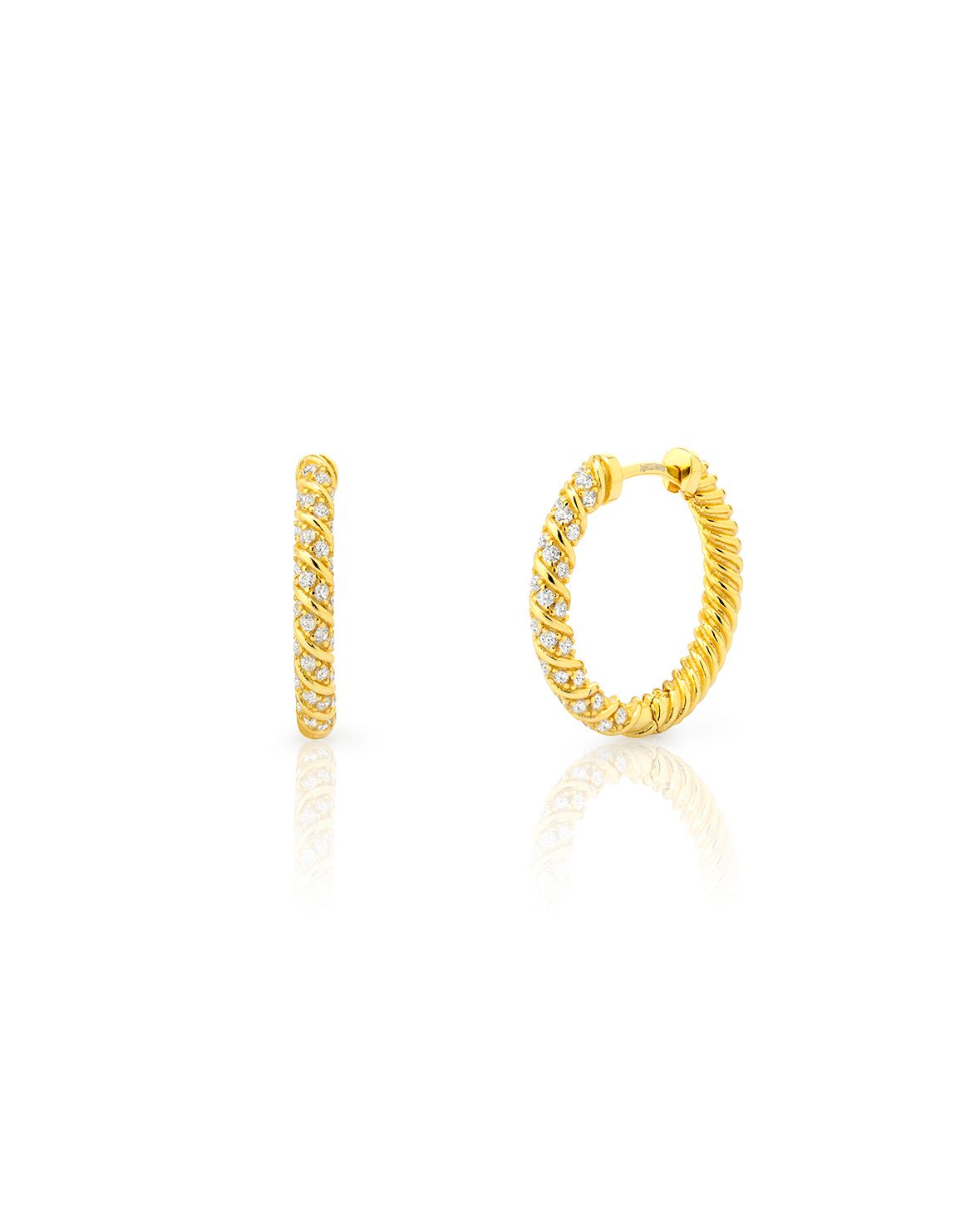 Pendientes Plata Dorada 19mm PEZ1538DO19 Aro Trenzado Circonitas. Pendientes fabricados en plata de ley 925 bañado en oro de 18kts. Diseño de aro trenzado con circonitas. Medida 19mm. Cierre click. Peso 4,10gr. Certificado de autenticidad y garantía de calidad en los materiales de fabricación. Ref PEZ1538DO19