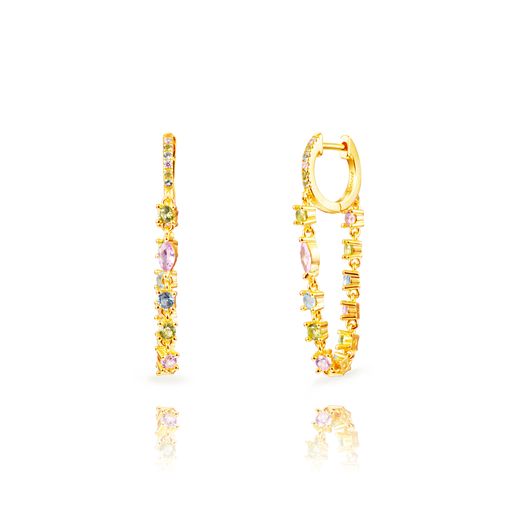 Pendientes Plata Dorada 35mm PEZ1655DOVA Aro Colgante Cadena Circonitas Multicolor. Pendientes fabricados en plata de ley 925 con baño de oro de 18kts. Diseño de aro colgante cadena con circonitas multicolor. Medida 35mm. Peso 4,10g. Cierre click. Certificado de autenticidad y garantía de calidad en los materiales de fabricación. Ref PEZ1655DOVA