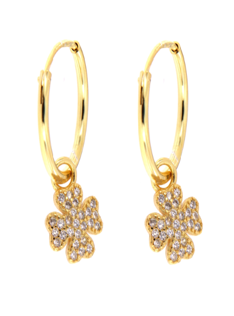 Pendientes Plata Dorada Mujer PPAC22/C Aro Colgante Trébol Circonitas