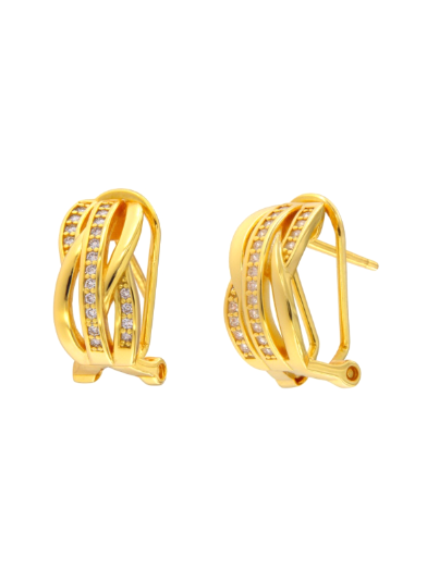 Pendientes Plata Dorada Mujer PPOM47/C Bandas Entrelazadas Circonitas. Pendientes fabricados en plata dorada de ley 925. Diseño de bandas entrelazadas con circonitas. Cierre omega. Certificado de autenticidad y garantía de calidad en los materiales de fabricación. Ref PPOM47/C