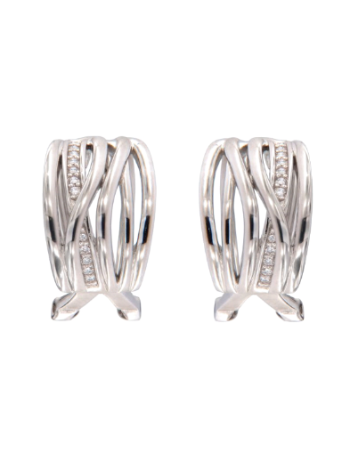 Pendientes Plata Mujer PPOM40 Bandas Cruzadas Circonitas. Pendientes fabricados en plata de ley 925. Diseño de bandas cruzadas con circonitas. Cierre omega. Certificado de autenticidad y garantía de calidad en los materiales de fabricación. Ref PPOM40