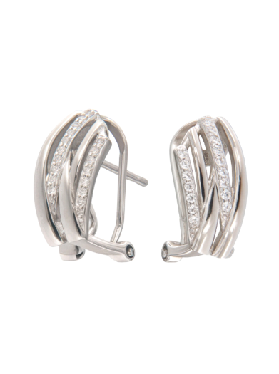 Pendientes Plata Mujer PPOM48 Bandas Cruzadas Circonitas. Pendientes fabricados en plata de ley 925. Diseño de bandas cruzadas con circonitas. Cierre omega. Certificado de autenticidad y garantía de calidad en los materiales de fabricación. Ref PPOM48
