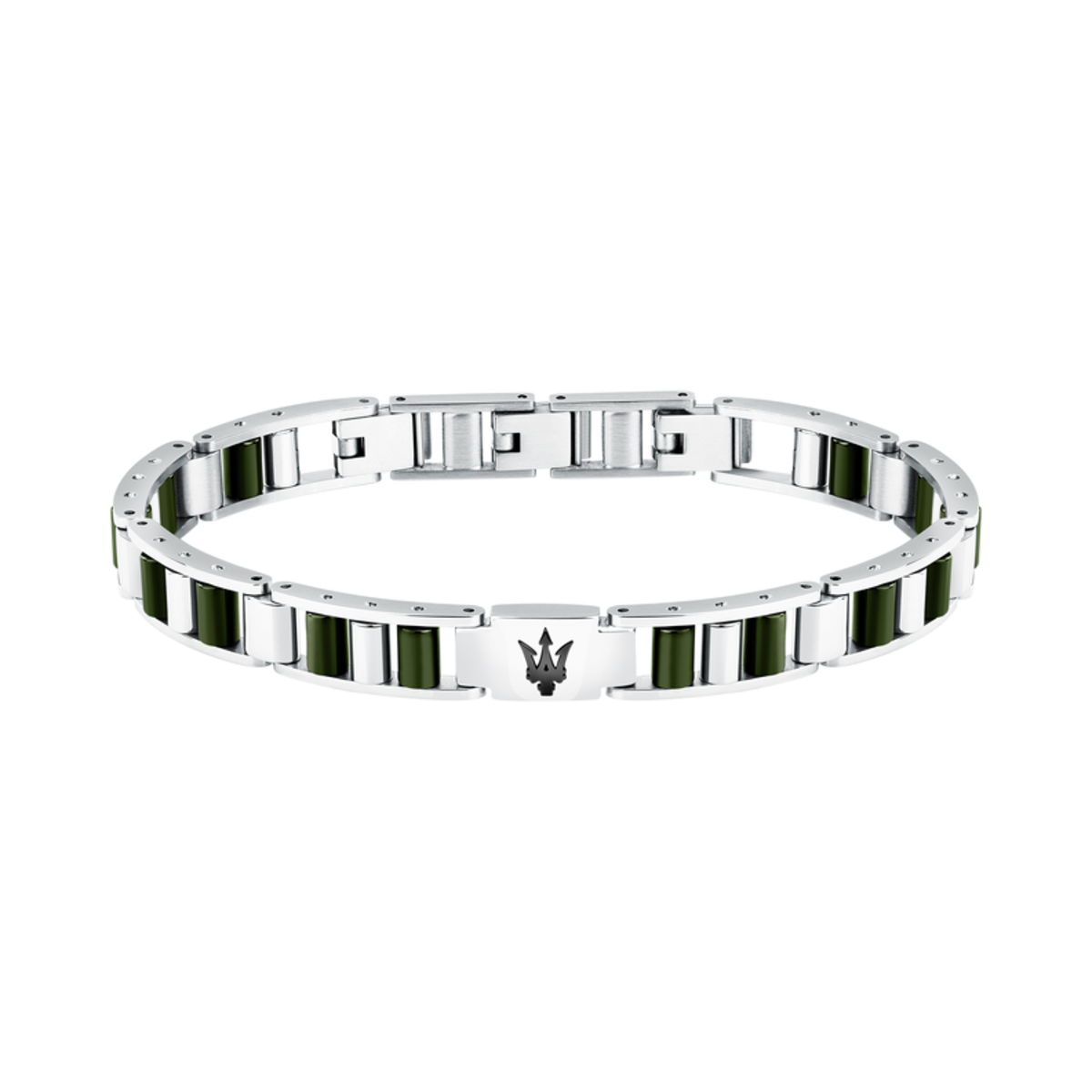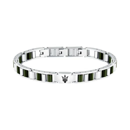 Pulsera Acero Maserati Hombre JM225ATZ56 Eslabones Plateado Cerámicas Verdes Tridente Maserati