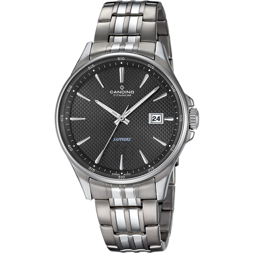 Reloj Candino Hombre C4606/D Swiss Made Titanio Analógico. Caja de titanio de 41mm de diámetro. Bisel plateado. Brazalete de titanio. Cierre desplegable. Esfera negra. Multifunción, calendario. Cristal zafiro. Movimiento quartz suizo. Swiss Made. Sumergible 50m. Peso 93,56gr. 3 años de garantía. Ref C4606/D