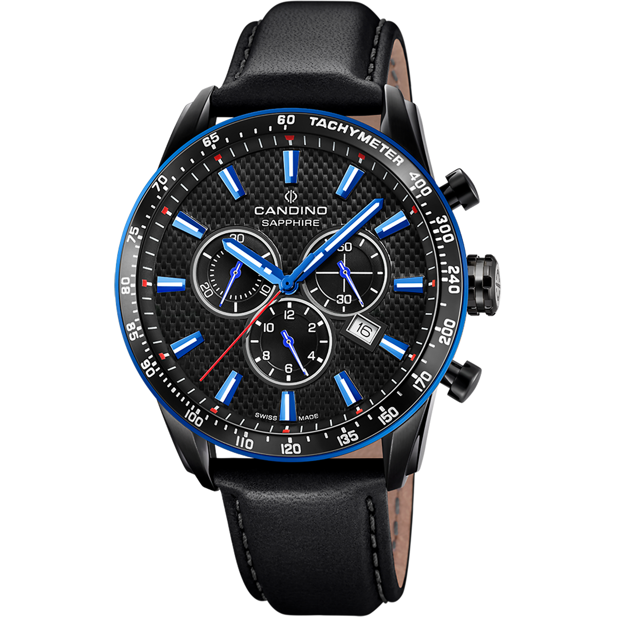 Reloj Candino Hombre C4759/4 Piel Negra Acero Negro Cronógrafo Analógico. Caja de acero negro de 45mm de diámetro. Bisel negro. Correa de piel negra. Cierre hebilla. Esfera negra bicolor azul. Multifunción, calendario, cronógrafo. Cristal zafiro. Movimiento quartz. Swiss Made. Sumergible 100m. 3 años de garantía. Ref C4759/4