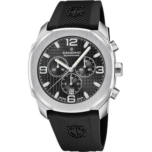 Reloj Candino Hombre C4774/6 Sport Negro Acero Cronógrafo Analógico. Caja de acero inoxidable de 44mm de diámetro. Bisel plateado. Correa de caucho negro. Cierre hebilla. Esfera negra. Multifunción, calendario, cronógrafo. Cristal zafiro. Movimiento quartz. Swiss Made. Sumergible 100m. 3 años de garantía. Ref C4774/6