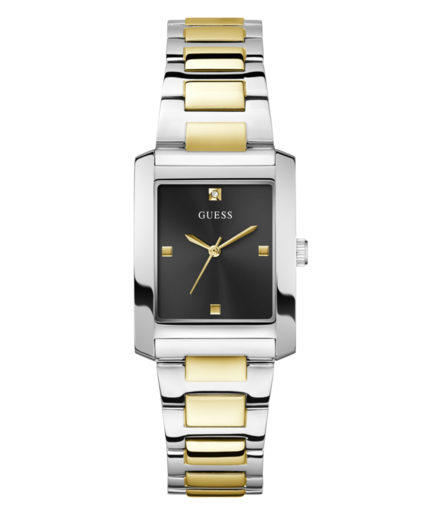 Reloj Guess Mujer GW0876L3 Acero Bicolor Dorado Analógico. Caja de acero de 27mm de diámetro. Bisel plateado. Brazalete de acero inoxidable bicolor dorado. Cierre desplegable. Esfera negra con diamantes a las 12h. Cristal mineral. Movimiento quartz. Sumergible 30m. 3 años de garantía. Ref GW0876L3
