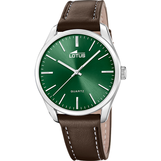 Reloj Lotus Hombre 19065/3 Piel Marrón Acero Analógico. Caja de acero de 42mm de diámetro. Bisel plateado. Correa de piel marrón. Cierre hebilla. Esfera verde. Cristal mineral. Movimiento quartz. Sumergible 50m. Peso 51,84gr. 3 años de garantía. Ref 19065/3