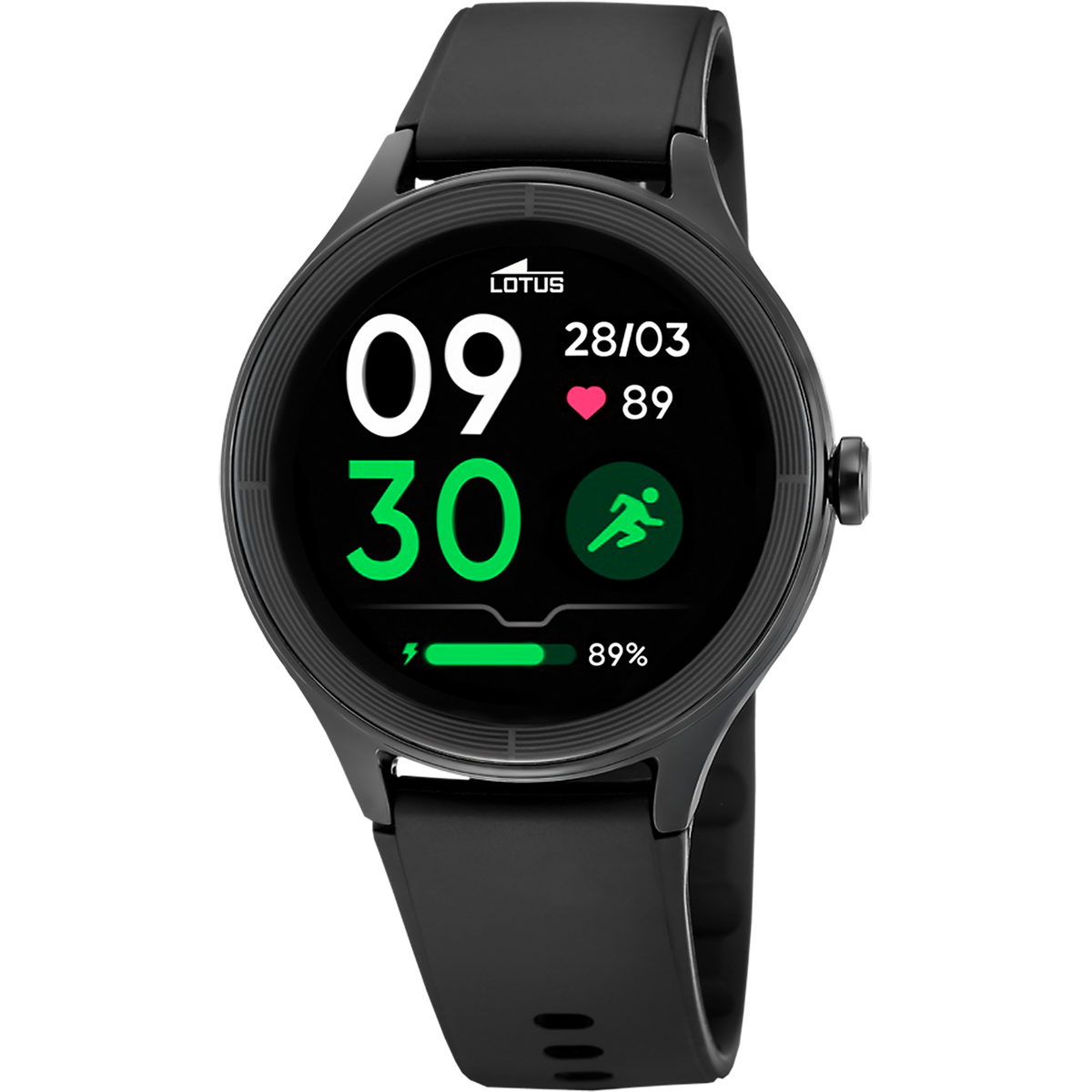 Reloj Lotus Smartwatch Mujer 50202/1 Sport Negro. Caja de aleación de Zinc negra de 42,1mm de diámetro. Bisel negro. Correa de caucho negro. Cierre hebilla. Esfera negra. Multifunción, SMARTIME, notificaciones, control de música, fotos, encontrar dispositivo, alarma, ahorro de batería, presión arterial, frecuencia cardiaca, sueño, temperatura, calendario, cronómetro. Cristal mineral. Movimiento Smartwatch. Estanqueidad IP65. 3 años de garantía. Ref 50202/1