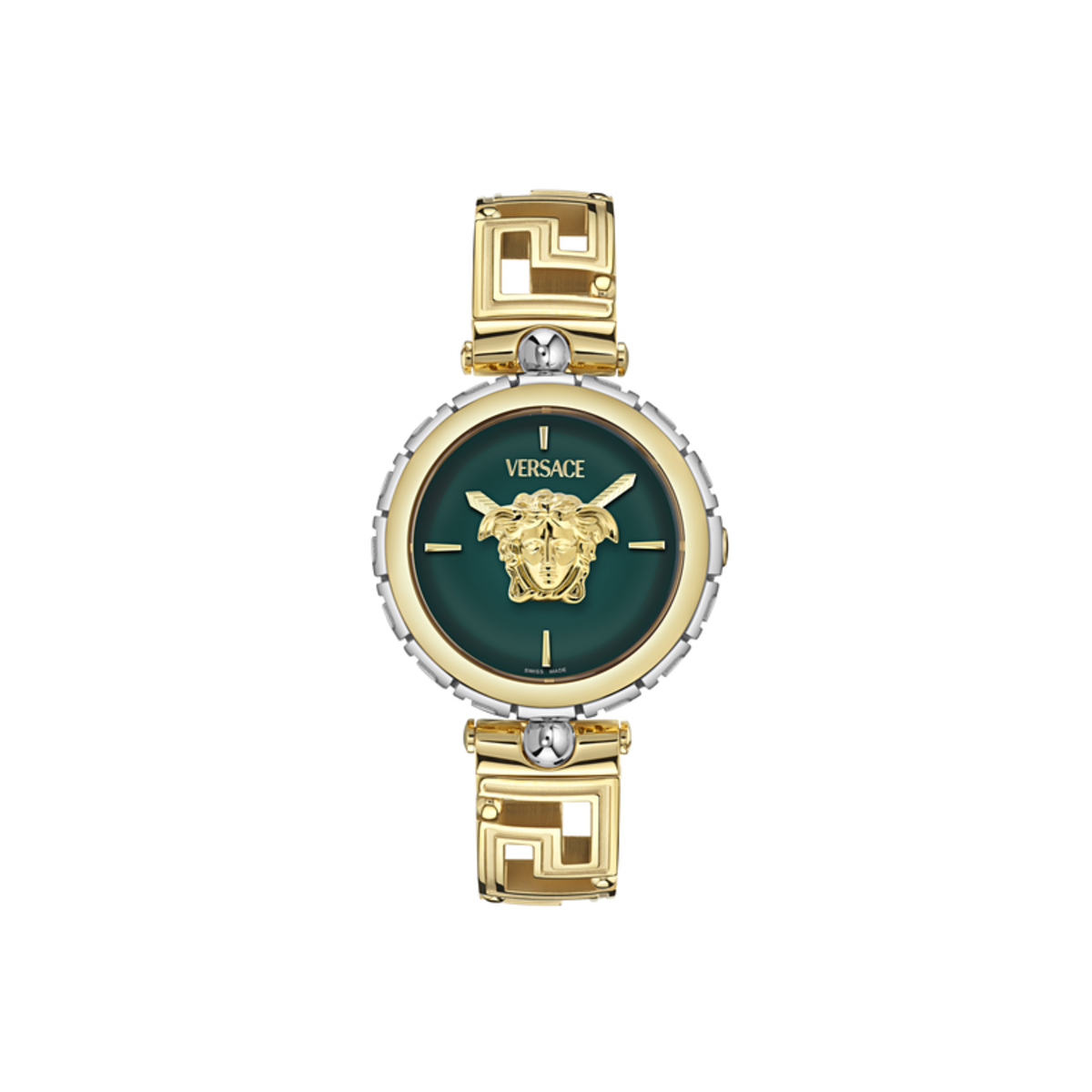 Reloj Versace Mujer VE0B00325 Acero Bicolor Dorado Medusa Jewel. Caja de Acero Bicolor Dorado de 24mm. Brazalete de Acero Bicolor Dorado. Cierre de joyeria. Esfera verde con medusa dorada. Cristal zafiro. Movimiento quartz Suizo. Sumergible 30m. 3 ańos de garantía. Ref VE0B00325