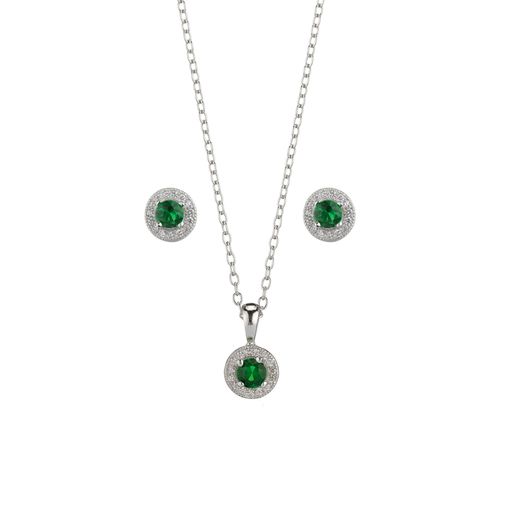 Set Colgante - Pendientes Plata 7,5mm SEC0005RHZV Circonita Verde