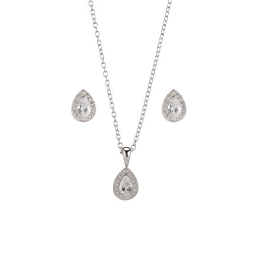 Set Colgante - Pendientes Plata 9mm SEC0003RH Circonita Blanca Lágrima